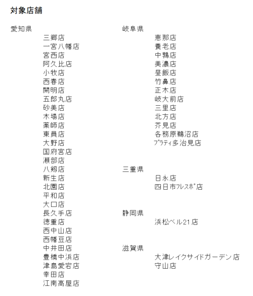 下記の対象店舗一覧をご確認ください