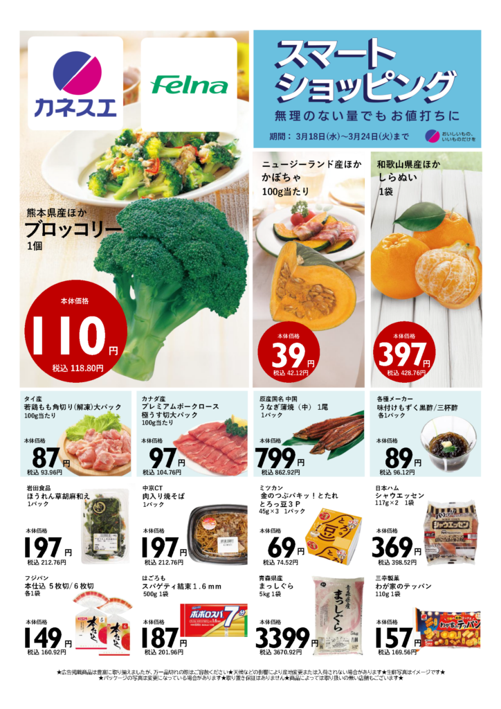 カネスエおよびフェルナ全店の最新チラシを公開いたしました。
