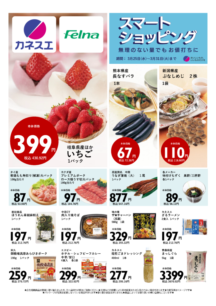 カネスエおよびフェルナ全店の最新チラシを公開いたしました。