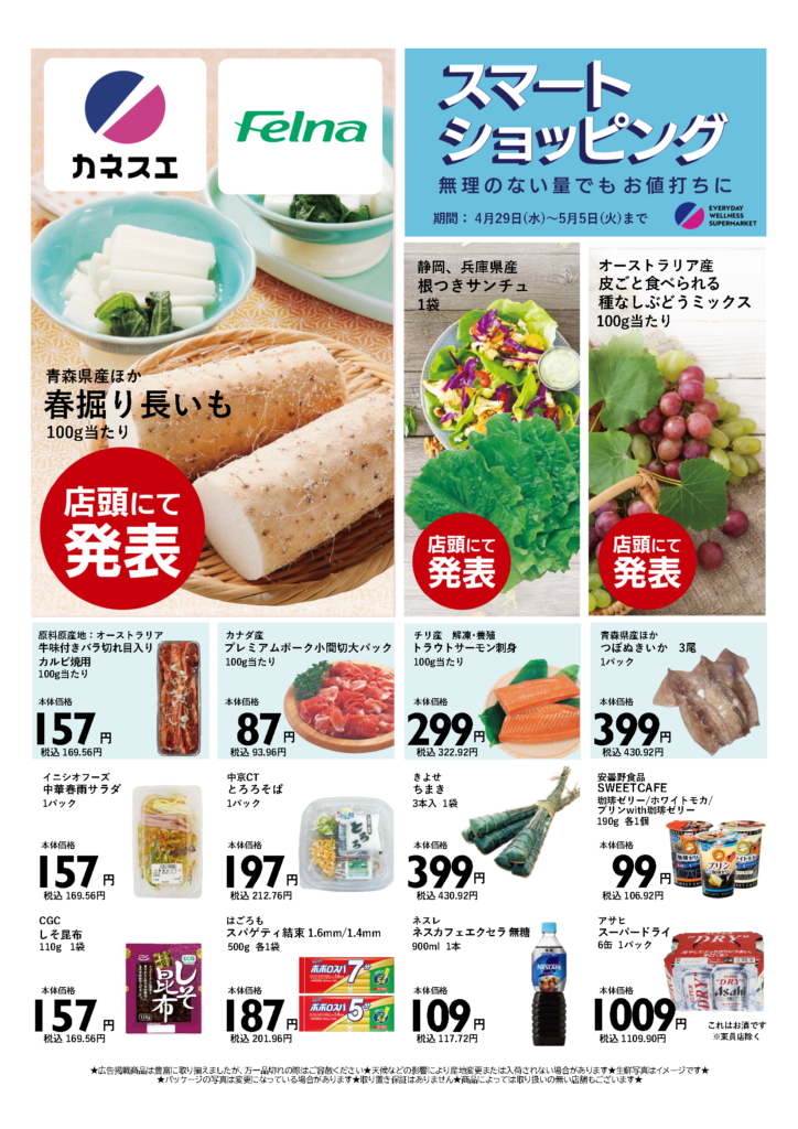 カネスエおよびフェルナ全店の最新チラシを公開いたしました。