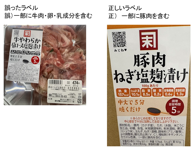 内容: 「牛やわらか肩ロース塩麴漬け」用の販促シールを誤って貼付し出荷